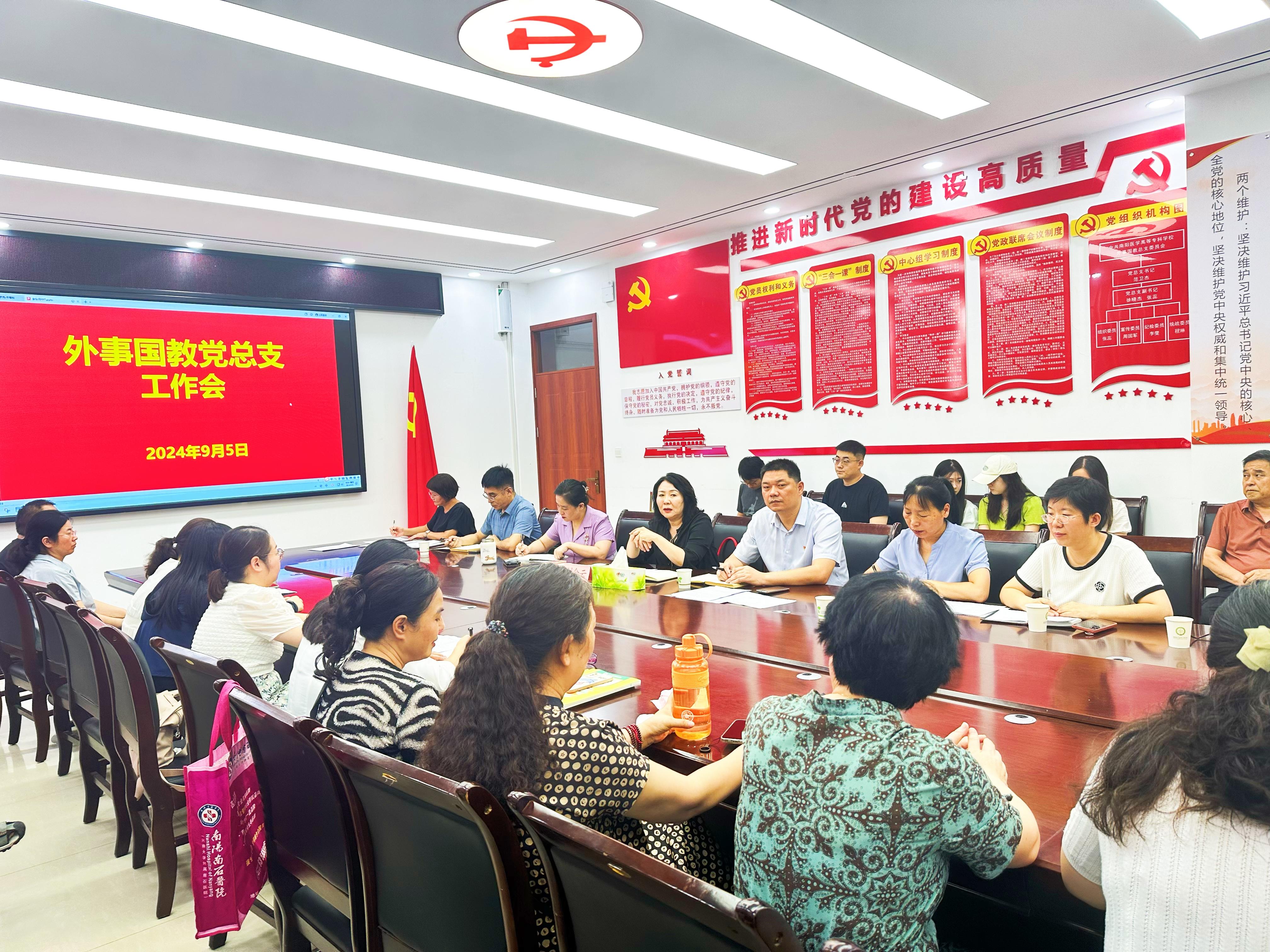 本网讯(文/国际教育学院 李冰)9月6日上午,外事国教党总支在三号教学楼423会议室召开新学期工作会,纪委书记刘金云出席,党总支全体人员参会。国教院院长徐晓杰主持会议。