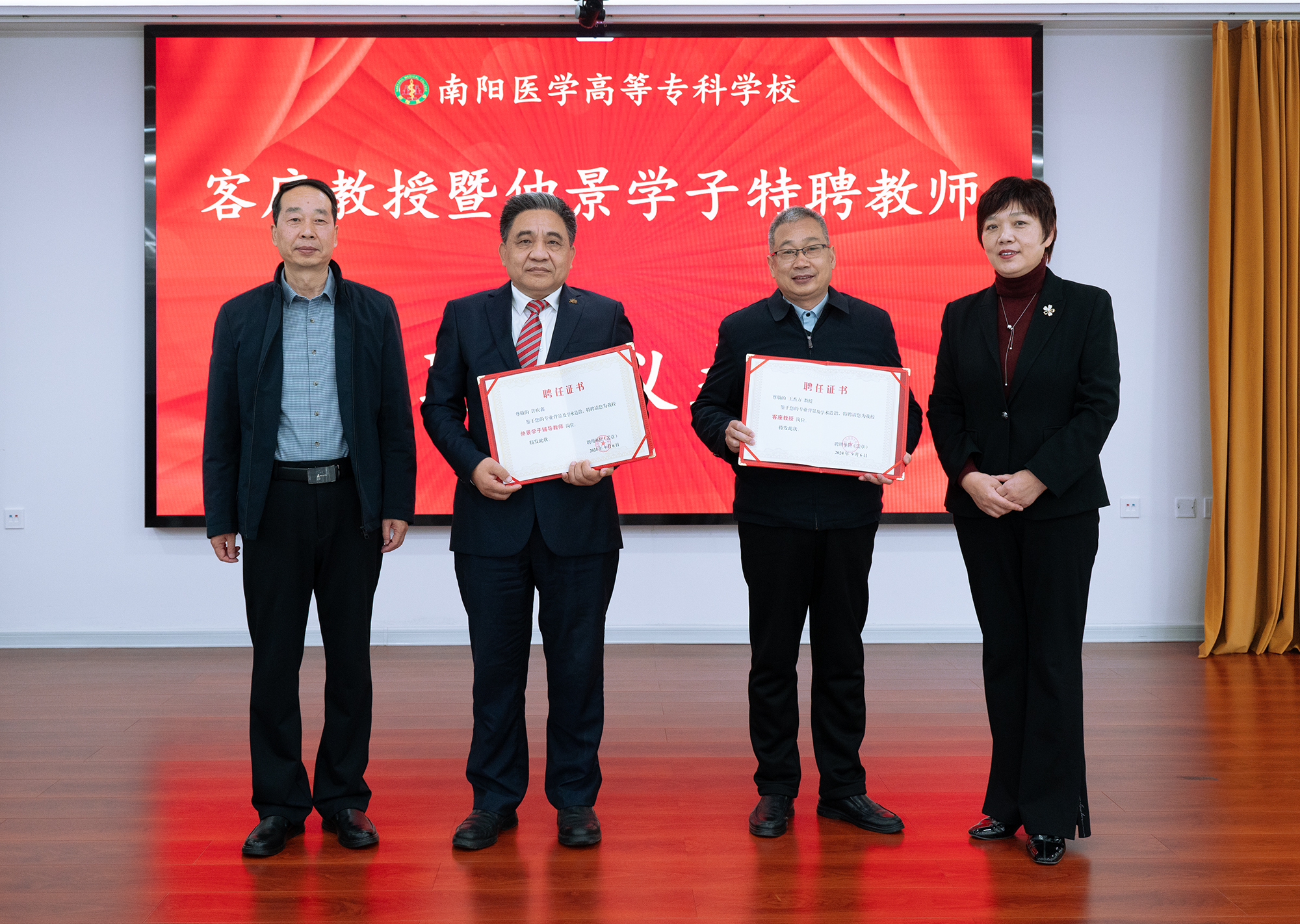 范真为王杰方颁发“客座教授”聘书。刘荣志为许庆鑫颁发“仲景学子辅导教师”聘书。