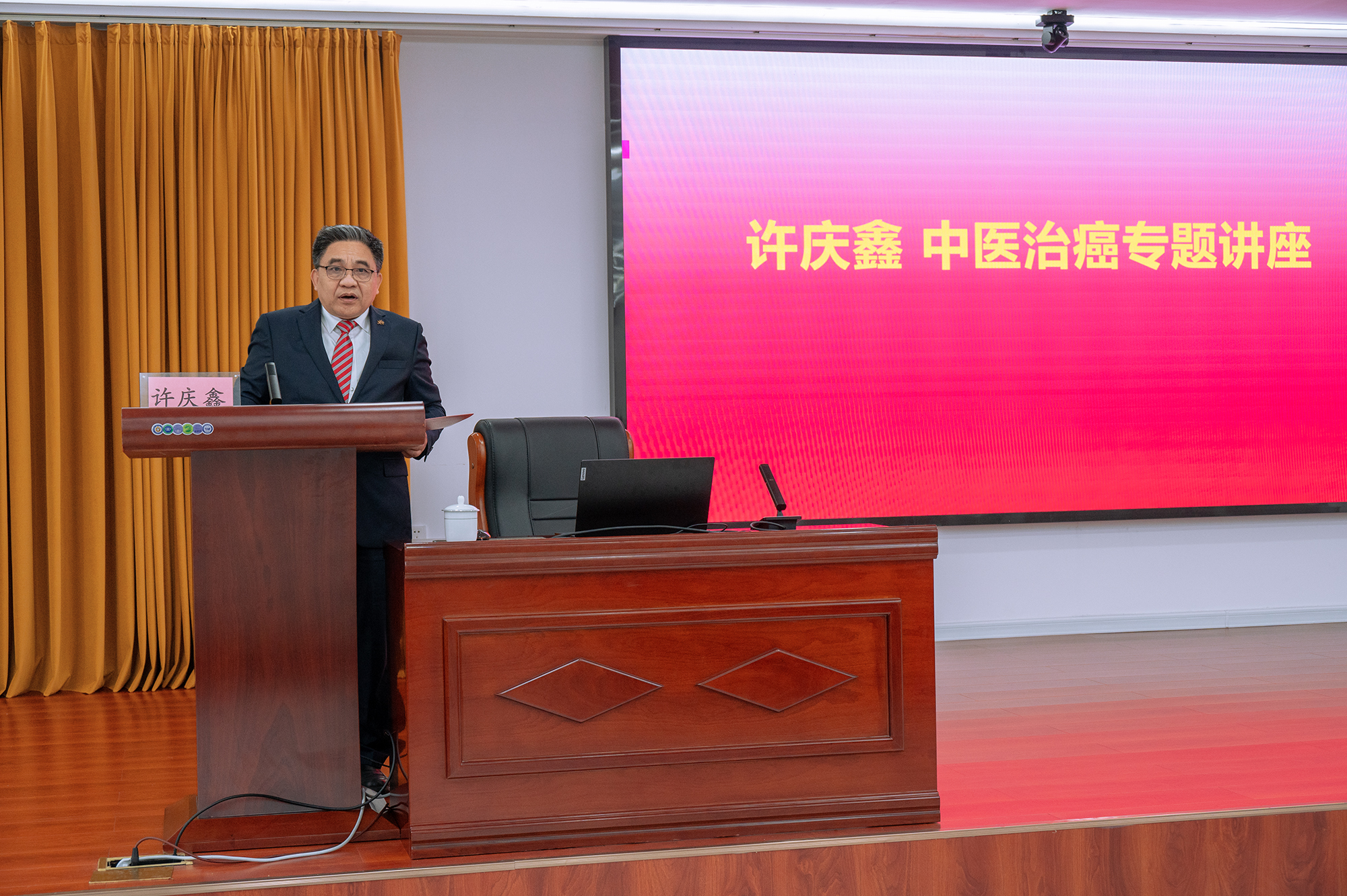 聘任仪式结束后,王杰方以“拼荆斩棘岐黄路 守正创新追梦人”为题作讲座。他运用中医经典实践案例,鼓励同学们“背经典、早临床、多临床”;传授了自己的为人从教行医经验,帮助学生们树立文化自信,坚定中医从业信念,济世为民。许庆鑫以“中医药治疗癌症的经验分享”为题,结合多年从业经历,分享了他在治疗癌症方面的独到经验,激励同学们“心怀仁爱、勇于实践。”