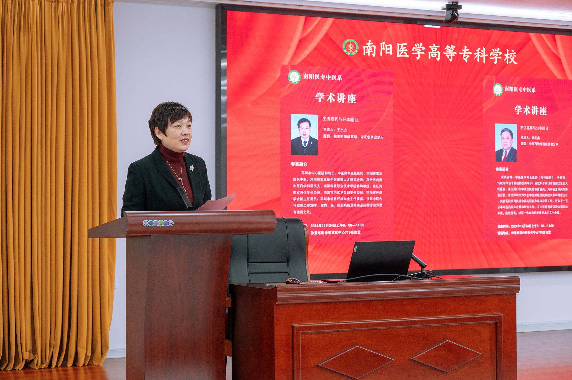 范真致辞。她表示,学校坚持走内涵式发展道路,传承仲景文化、培育仲景学子、擦亮仲景品牌,构建了特色鲜明的中医药人才培养体系。聘请校外专家开展学术讲座,对于带动年轻教师成长、提高人才培养质量具有重要意义。她勉励仲景学子要坚定中医药文化自信,把中医药这一宝贵财富继承好、发展好、利用好。