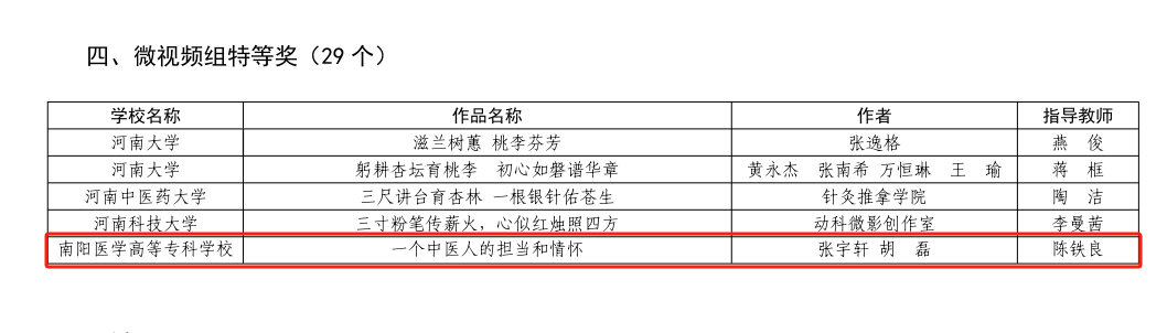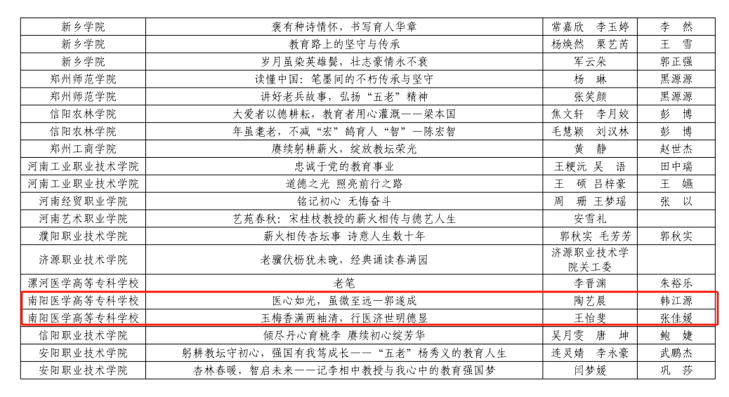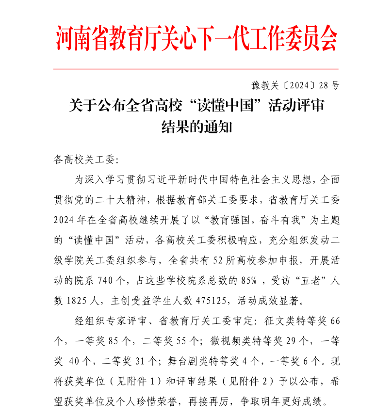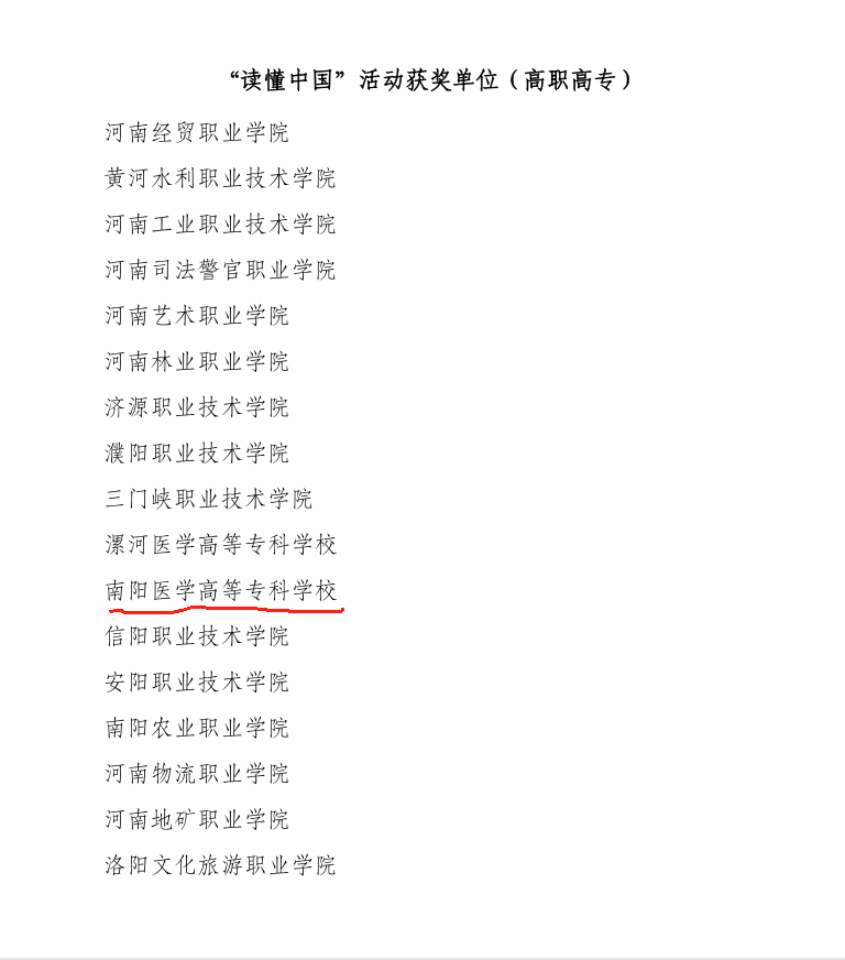 为深入学习贯彻习近平新时代中国特色社会主义思想,全面贯彻党的二十大精神,根据教育部关工委要求,省教育厅关工委2024 年在全省高校继续开展了以“教育强国,奋斗有我”为主题的“读懂中国”活动。多盈手机在线登录关工委积极组织相关活动,下发了《南阳医专关工委开展2024年“读懂中国”活动的实施方案》,学校各二级关工委认真组织,积极参与,活动成效显著。最后由多盈手机在线登录关工委报送的征文《医心如光,虽微至远——郭遂成》、《玉梅香满两袖清,行医济世明德显》获得征文组一等奖,微视频《一个中医人的担当和情怀》获得微视频组特等奖。多盈手机在线登录关工委将倍加珍惜荣誉,再接再厉,争取更好成绩。(编审 李峰松)