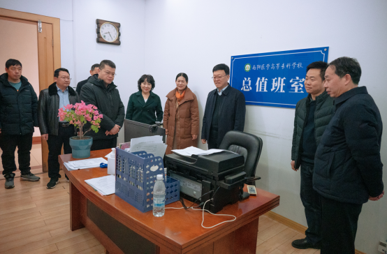 本网讯(文/宣传部 何义霞)祥龙辞旧岁,金蛇迎新春!1月29日,正月初一上午,校党委书记柳明伟、副书记刘涛、纪委书记刘金云、党委委员、副校长刘荣志深入仲景西区、仲景东区、孔明校区和三所附属医院,看望慰问值班值守的教职员工、留学生及医务工作者代表。