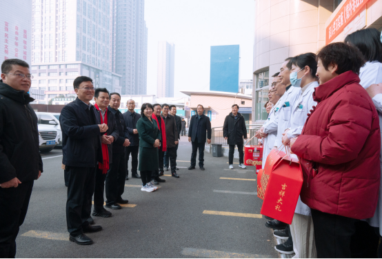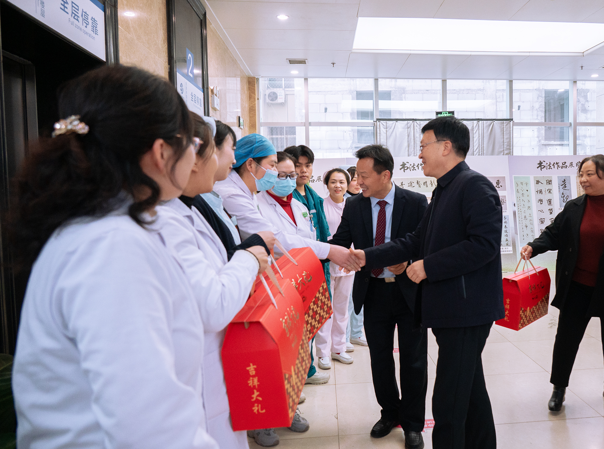 在三所附属医院,柳明伟详细了解医院节假日值班值守、患者就诊、医疗救治等情况。每到一处,校领导都与医护人员亲切握手,为他们送上慰问品,感谢他们的辛勤付出。医护人员深受感动,大家纷纷表示,一定不辜负学校和医院领导的期望,不断提升医疗服务质量,为群众提供优质、高效的医疗服务。