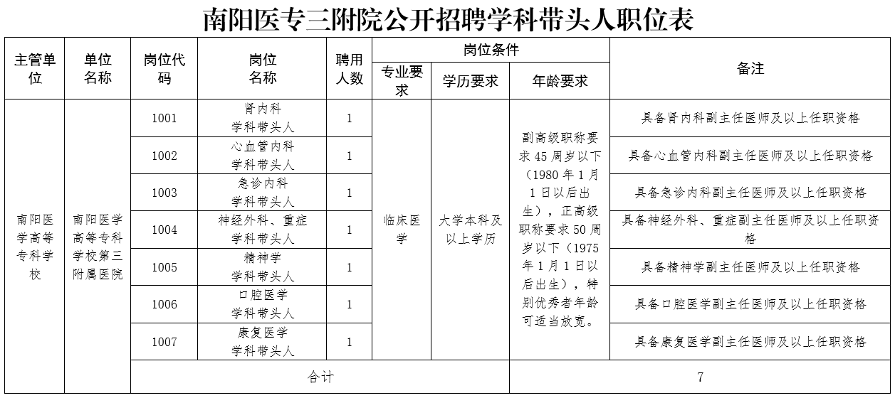 1.南阳医专三附院公开招聘学科带头人职位表