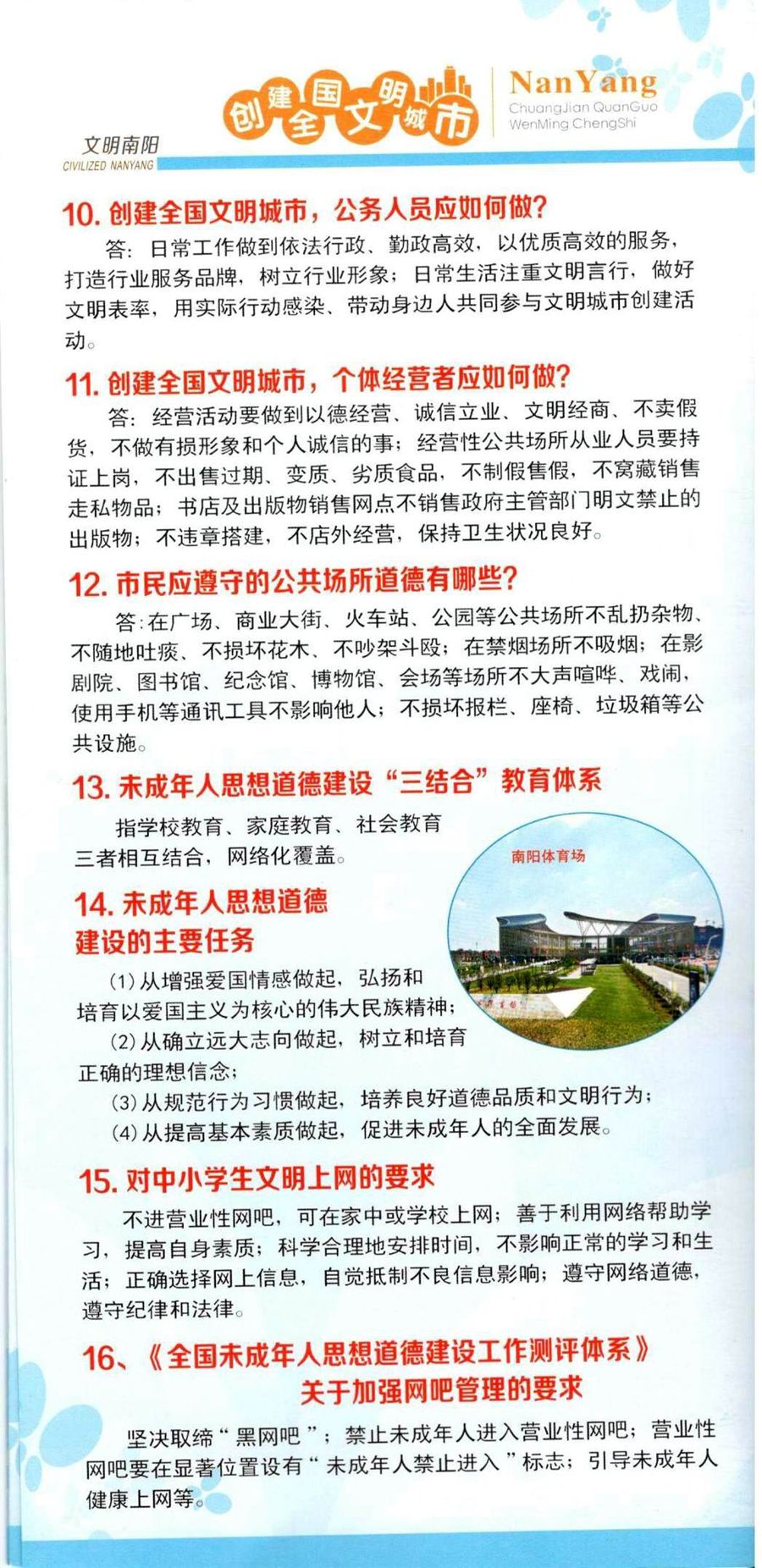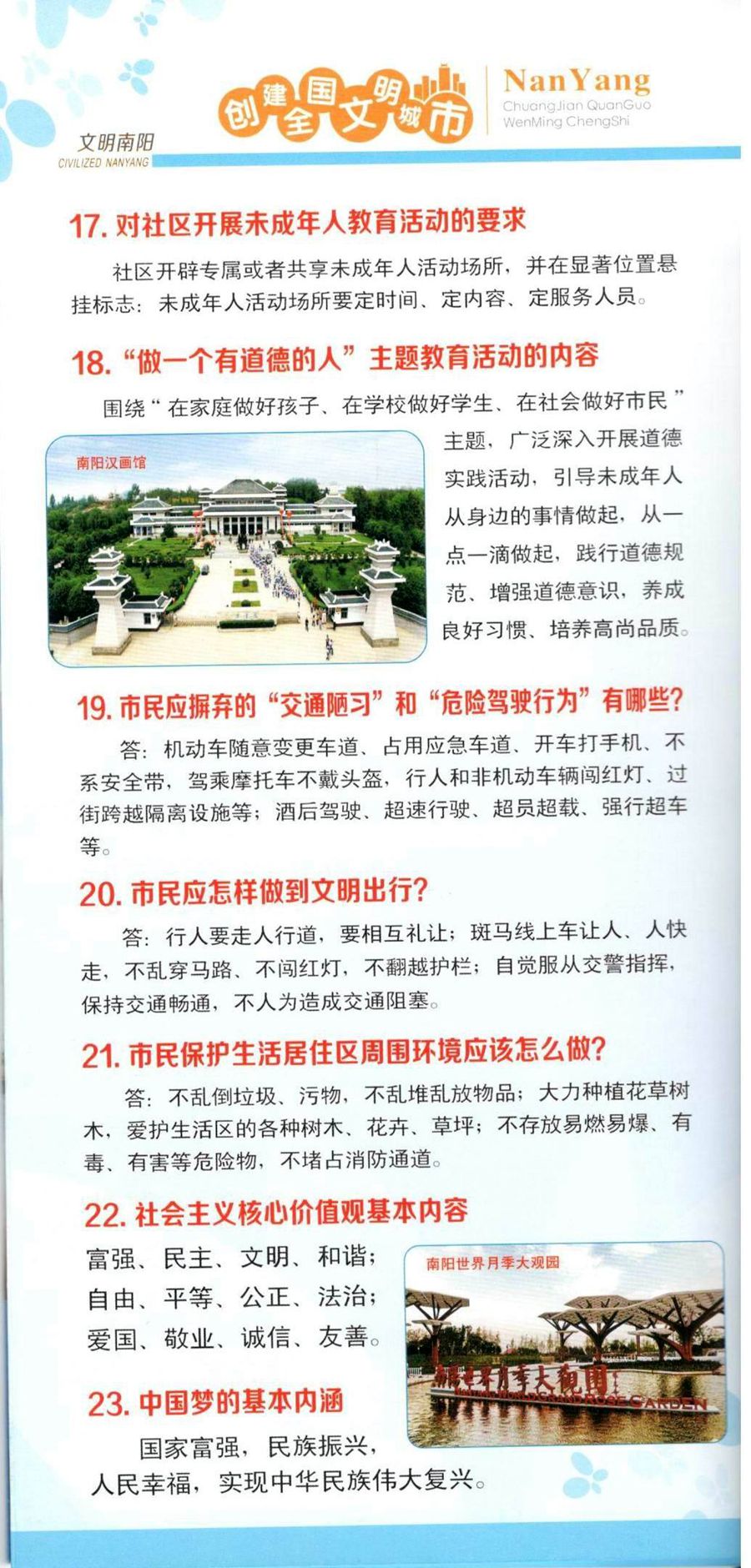 三、全校师生员工在熟知《创建全国文明城市市民文明手册》各项内容的基础上,要熟背以下三项内容。